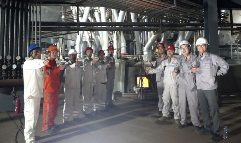 2022年8月,項(xiàng)目進(jìn)入最后的沖刺階段。作為項(xiàng)目建設(shè)負(fù)責(zé)人,劉寅更是駐守到一線,在工地、車間現(xiàn)場,帶領(lǐng)設(shè)備安裝管理團(tuán)隊(duì),專攻調(diào)試期間的現(xiàn)場突發(fā)問題,實(shí)行“24小時(shí)現(xiàn)場排班制”,一刻不漏盯現(xiàn)場、盯設(shè)備、盯產(chǎn)線。8月份的印尼正值高溫高熱季節(jié),劉寅的身先士卒也影響了所有項(xiàng)目建設(shè)、調(diào)試人員,最終大家團(tuán)結(jié)一心,奮力沖刺,最終打贏了這場“硬仗”。回憶這段經(jīng)歷,劉寅至今印象深刻,他幽默地說道:“大家24小時(shí)都在現(xiàn)場,每天一身臭汗,全部變成了‘油膩男’,但每個(gè)人眼神中的堅(jiān)毅讓我相信項(xiàng)目一定能成。那是一段難忘的經(jīng)歷,很榮幸與他們?cè)谕粭l’戰(zhàn)壕‘里作戰(zhàn),一起為勝利而戰(zhàn)!”