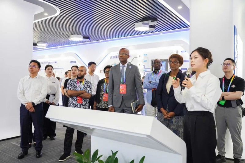 考察團一行先后參觀了中偉科技館、中偉全球研發中心等,詳細了解中偉發展歷程、科技創新以及全球產業布局等情況。在科技館,劉一重點向考察團介紹了中偉“資源開發-材料智造-全球循環”的新能源材料產業生態以及公司圍繞這一生態所作的的全球產業布局。代表團成員認真聆聽,對中偉的生態化、全球化發展表示由衷的贊賞,并不時就中偉在非洲產業布局和未來規劃進行問詢,探討深入合作的可能性。