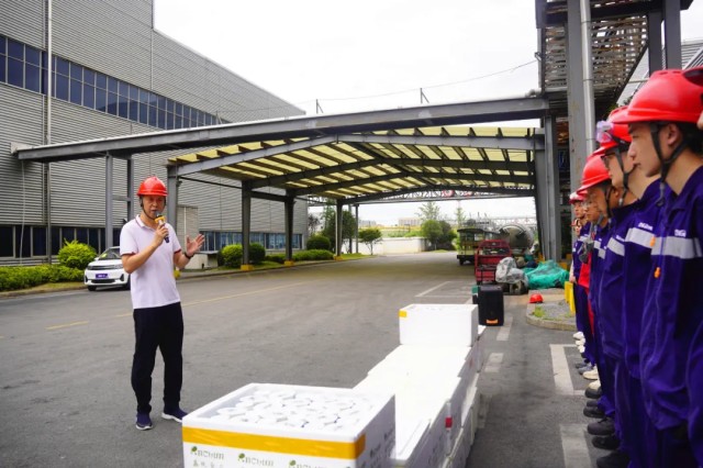 與此同時(shí),寧鄉(xiāng)產(chǎn)業(yè)基地的清涼關(guān)懷同樣“熱烈”。自氣溫攀升以來(lái),寧鄉(xiāng)產(chǎn)業(yè)基地持續(xù)為一線員工配送綠豆沙等飲品。基地總經(jīng)理董本鋼等領(lǐng)導(dǎo)深入車間慰問(wèn),關(guān)切詢問(wèn)職工高溫下的生產(chǎn)生活。基地EHS部還現(xiàn)場(chǎng)分享了“夏季中暑預(yù)防與急救”的知識(shí),強(qiáng)化安全生產(chǎn)培訓(xùn)。