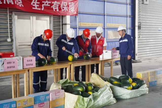 活動(dòng)現(xiàn)場(chǎng),慰問(wèn)小組邊切西瓜邊分物資,帶來(lái)一場(chǎng)“及時(shí)雨”,驅(qū)散連日酷暑,讓一線員工感受到實(shí)實(shí)在在的清涼體驗(yàn)。同時(shí),慰問(wèn)小組還與員工們親切交流,聽取需求建議,進(jìn)行開門教育,再三叮囑大家在高溫期間要時(shí)刻注意防暑,強(qiáng)化安全生產(chǎn)意識(shí),做好個(gè)人安全防護(hù),為中偉各項(xiàng)事業(yè)再創(chuàng)佳績(jī)、再立新功。