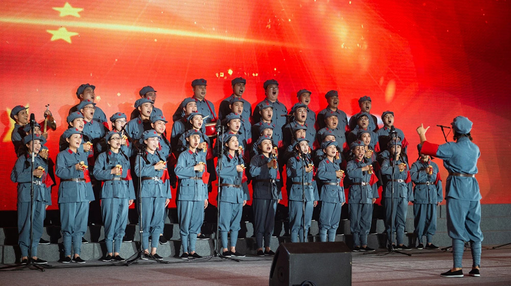 在第一篇章中,宏林建設、新材料西部產業基地、中稼智能制造、控股地產4支合唱隊共演唱了包括《唱支山歌給黨聽》、《到吳起鎮》、《太行山上》等多支經典紅色歌曲,生動展現在大革命的烽煙中,在艱險的長征路上,在抗日戰爭、解放戰爭的沙場上,中國共產黨團結帶領中國人民浴血奮戰、淬火成鋼的偉大歷程。