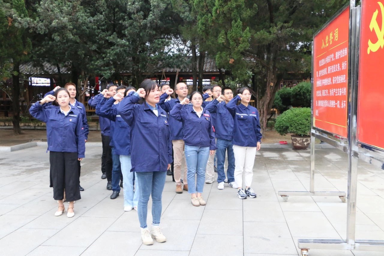 參觀結(jié)束后,中偉新材料有限公司黨支部書記袁旬帶領全體黨員,在紀念館前重溫入黨誓詞,警醒全體黨員要不忘初心,牢記黨員身份,服從組織決定,要沿著先輩的足跡,傳承黨的智慧,在新時代中國特色社會主義思想指引下,煥發(fā)新氣象,擔當新作為。