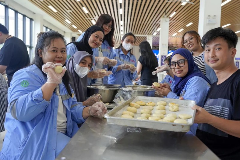 為了給大家創(chuàng)造美好的節(jié)日記憶,莫羅瓦利產(chǎn)業(yè)基地在中秋節(jié)當天開展了“月餅制作活動”。活動現(xiàn)場,中、印尼籍員工齊聚一堂,在專業(yè)廚師的指導(dǎo)下共同制作專屬創(chuàng)意月餅。大家在交流與協(xié)作中體驗手作的樂趣,一塊塊月餅不僅承載著節(jié)日的甜蜜,更成為連接不同文化背景員工之間的情感紐帶,進一步加深了團隊情誼與文化理解。